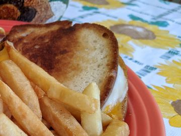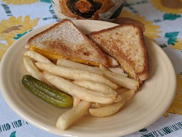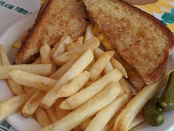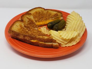 Not your Mama's grilled cheese! Served with side of chips and pickles.