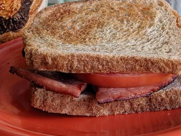 Classic bacon, lettuce, and tomato sandwich served on toasted bread with basil mayo. Served with chips. Double the bacon and make it an XL for $9.39.