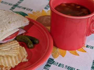 Cup of any soup paired with a half grilled cheese or deli sandwich.